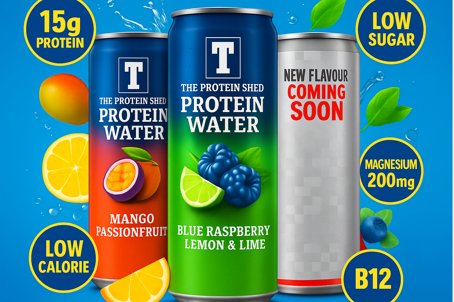 The Protein Shed - 12 x Mango and Passion fruit Protein Water 330ml (15g Protein, 200mg Magnesium & B12)